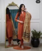 Bring grace and comfort together with this beautiful cotton printed suit set, designed especially for women who love a perfect blend of traditional charm and modern simplicity. This three-piece suit set is crafted from soft, breathable cotton fabric — perfect for daily wear, office, casual outings, or festive gatherings.